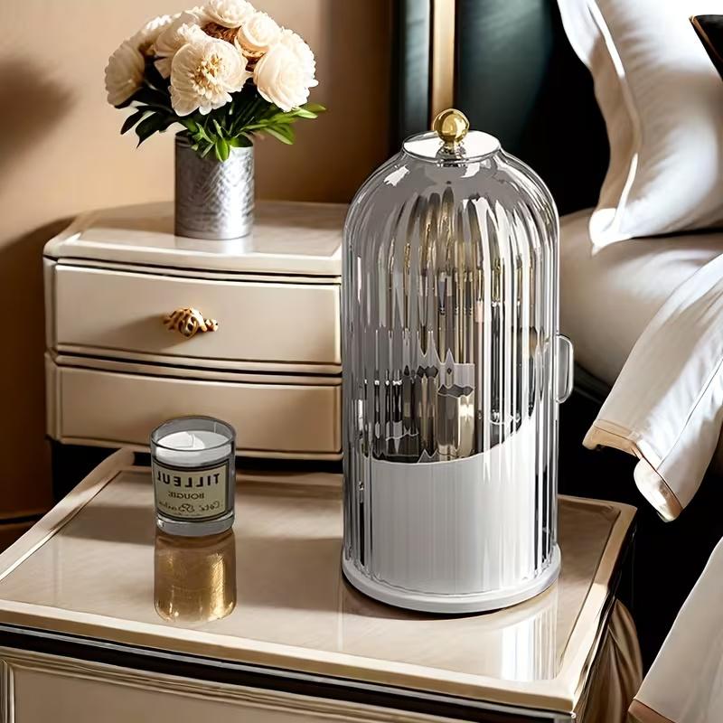 Dustproof, compartmentalized, rotating storage box